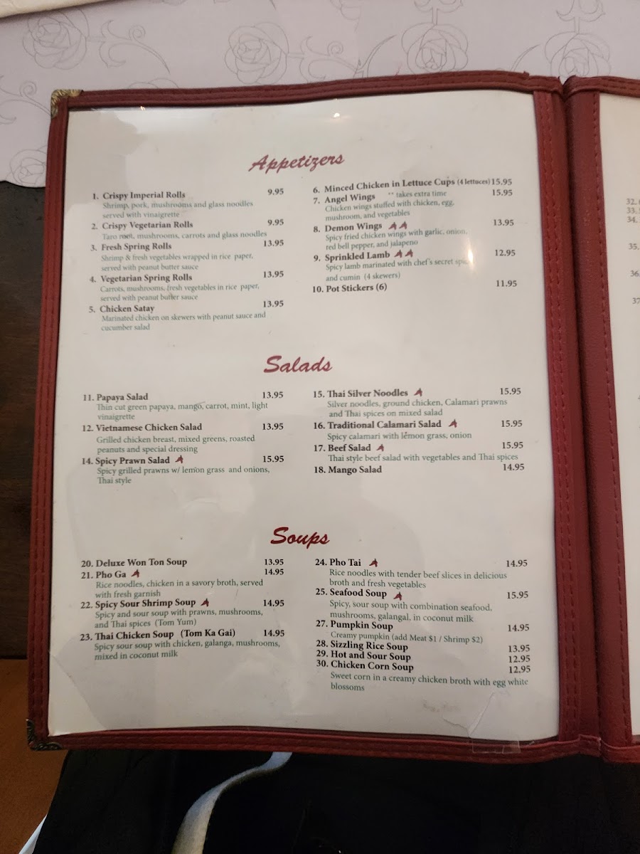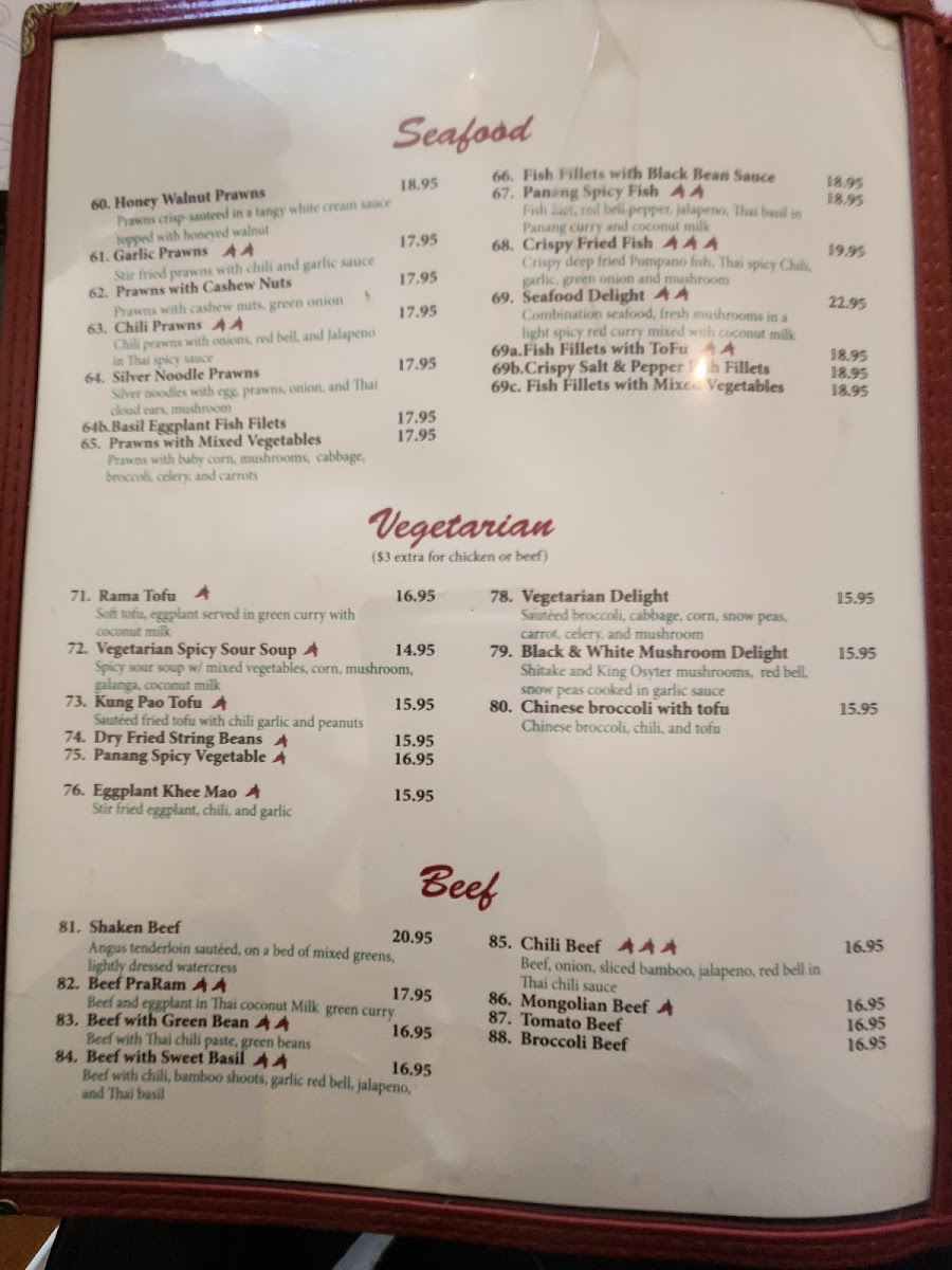 Combination seafood, fresh mushroom in a light spicy red curry mixed with coconut milk.
